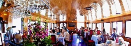 11h00 - 11h15: Quý khách sẽ dùng bữa trưa với những món ăn Việt tại nhà hàng trên tàu trong quá trình tàu di chuyển về lại bến, tự do chiêm ngưỡng cảnh đẹp Hạ Long một lần nữa trước khi chia tay Vịnh Hạ Long.